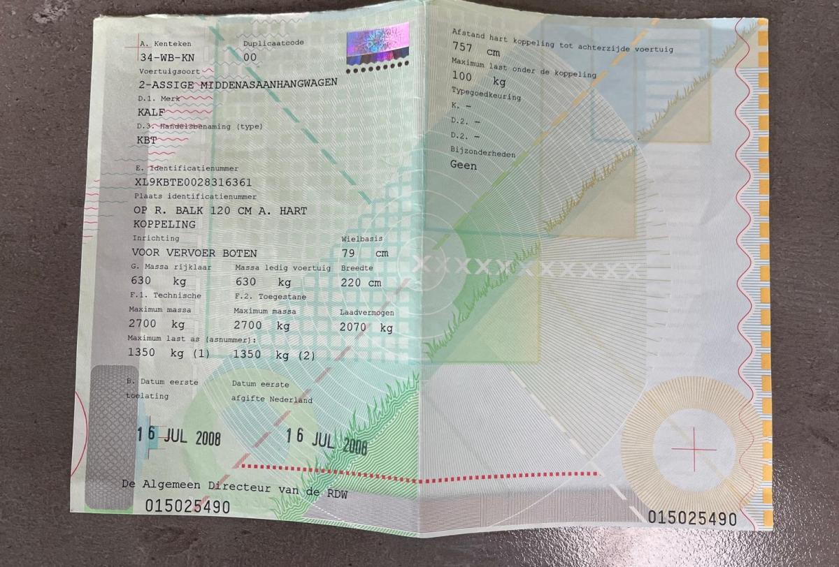 Nette en goed onderhouden Kalf Trailer 2700 kg van bouwjaar Juli 2008