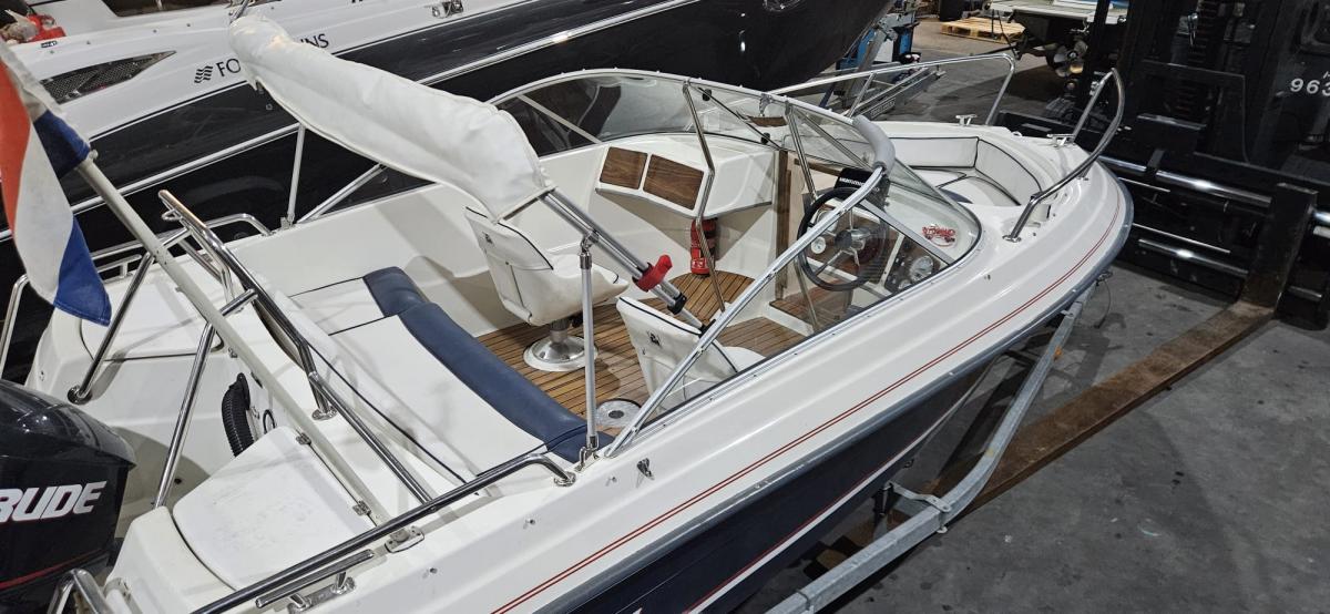 Ryds 515 GTX - Evinrude E-Tec Ryds 515 GTX is a popular, stable, and economical motorboat with numerous applications, perfect for recreational boating, fishing, or as a solid family boat. The Swedish quality is evident in both the finish and the sailing characteristics. This boat is equipped with a 115HP Evinrude E-Tec, which offers a powerful and reliable experience on the water with low fuel consumption and good acceleration.