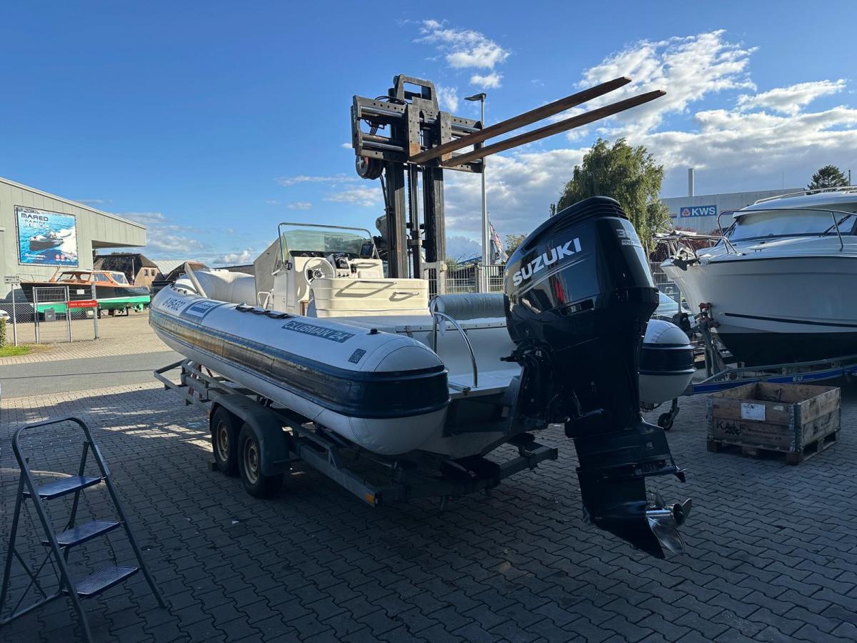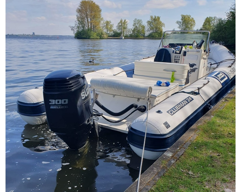 dit is een grote snelle RIB met een 300pk Suzuki Outboard motor uit 2017 die pas in 2019 in gebruik is genomen.