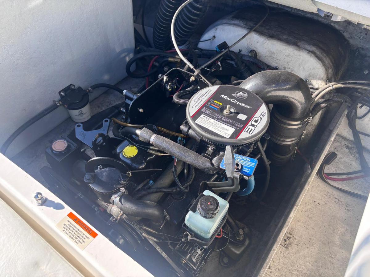De boot is uitgerust met een MerCruiser 3.0 TKS motor met 135 PK. Deze benzinemotor staat bekend om zijn betrouwbaarheid en levert voldoende vermogen voor zowel rustig varen als actieve watersport. Met slechts 429 draaiuren verkeert de motor in goede staat.