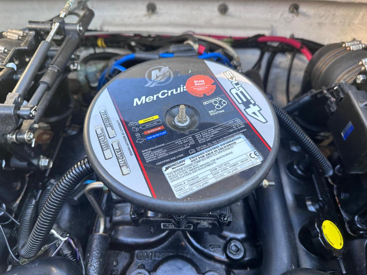 De boot is uitgerust met een krachtige MerCruiser 4.3 V6 TKS motor (190 pk), wat zorgt voor uitstekende prestaties en soepele vaareigenschappen. De stabiele romp en sportieve handling maken deze boot geschikt voor zowel rustig varen als watersport.