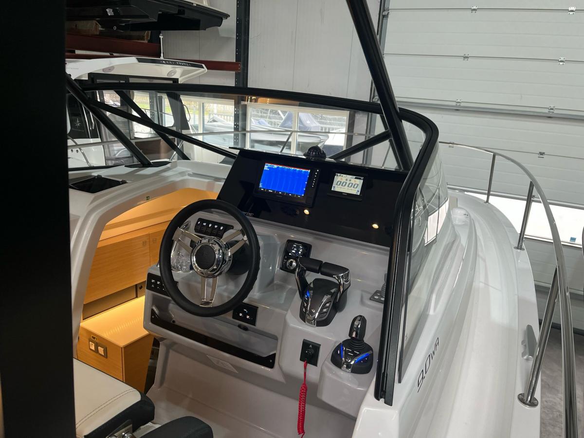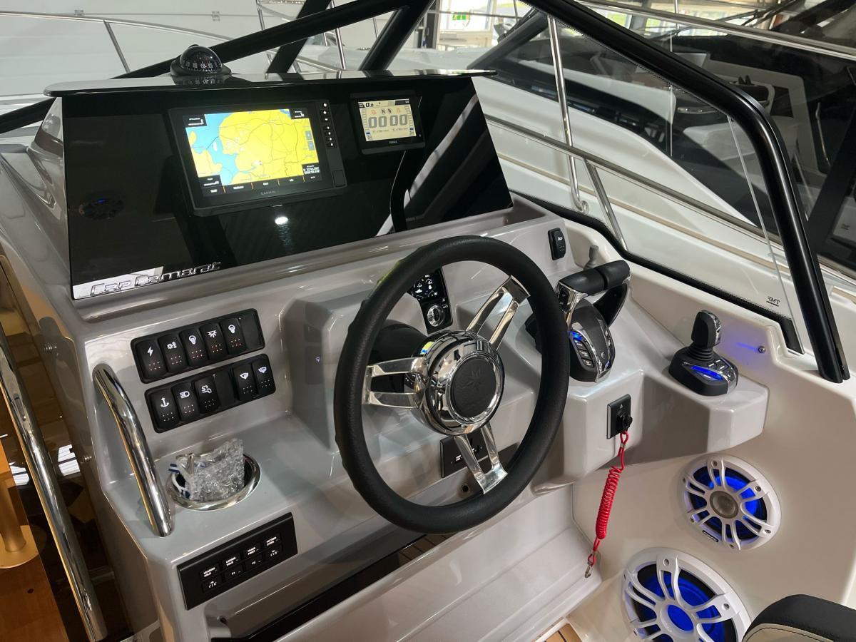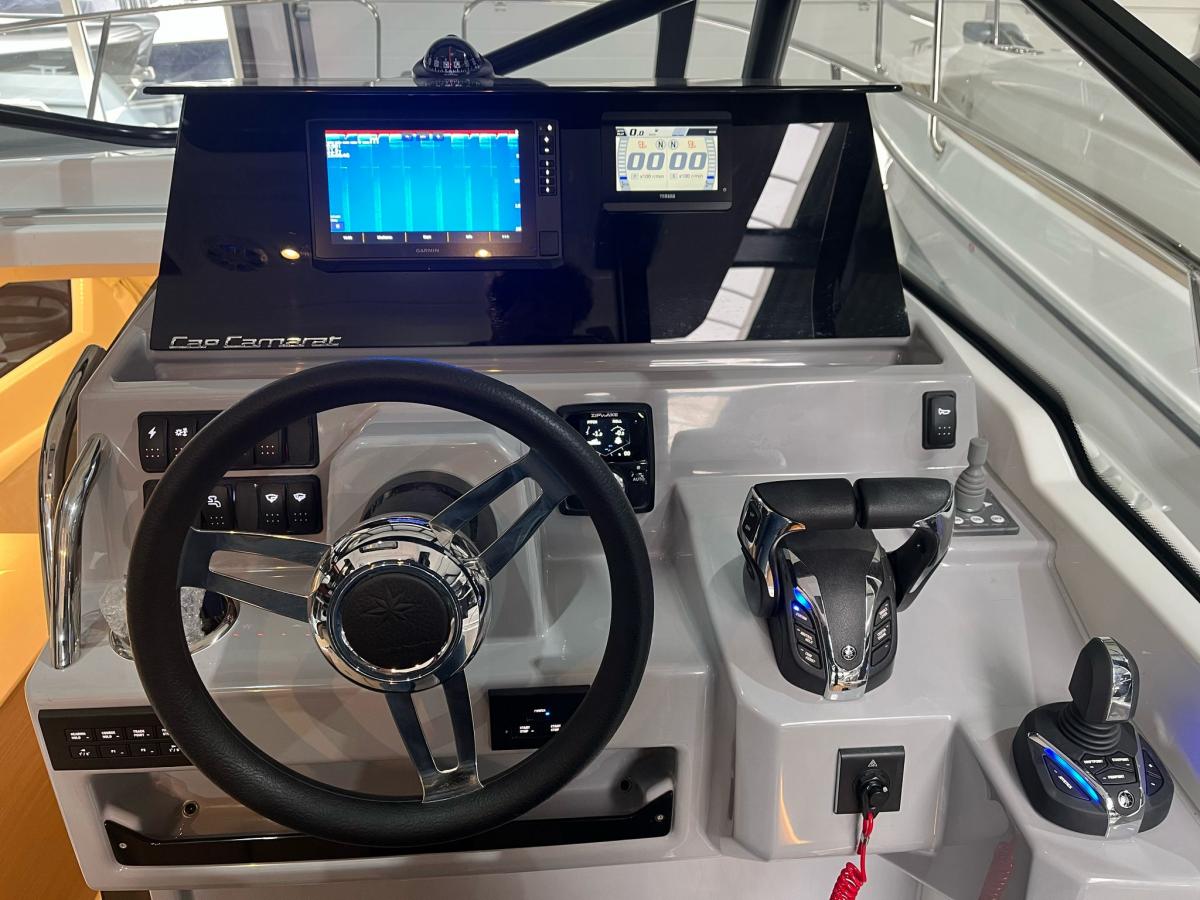 De geheel nieuwe Cap Camarat 9.0 CC Series 2 is ontworpen om elke dag op het water onvergetelijk te maken – of u nu met vrienden gaat varen of geniet van tijd met het gezin. Met zijn gedurfde styling, geavanceerde technologie en doordachte ontwerp biedt deze center console van de volgende generatie de perfecte combinatie van prestaties en comfort. CRUISE-ERVARING CENTRAAL De Cap Camarat 9.0 CC Series 2 geeft een nieuwe definitie aan de familiedagboot, met een gestroomlijnde nieuwe romp en een langgerekt profiel voor soepeler cruisen in alle weersomstandigheden. De omhullende voorruit en verbeterde ventilatie zorgen voor extra comfort aan het roer, terwijl de centrale stuurstand – uitgerust met twee copilootstoelen – een sportieve, responsieve vaart biedt. Een groot beeldscherm brengt de nieuwste generatie navigatie binnen handbereik en een joystickgestuurde boegschroef maakt manoeuvreren moeiteloos voor watersporters van elk niveau.