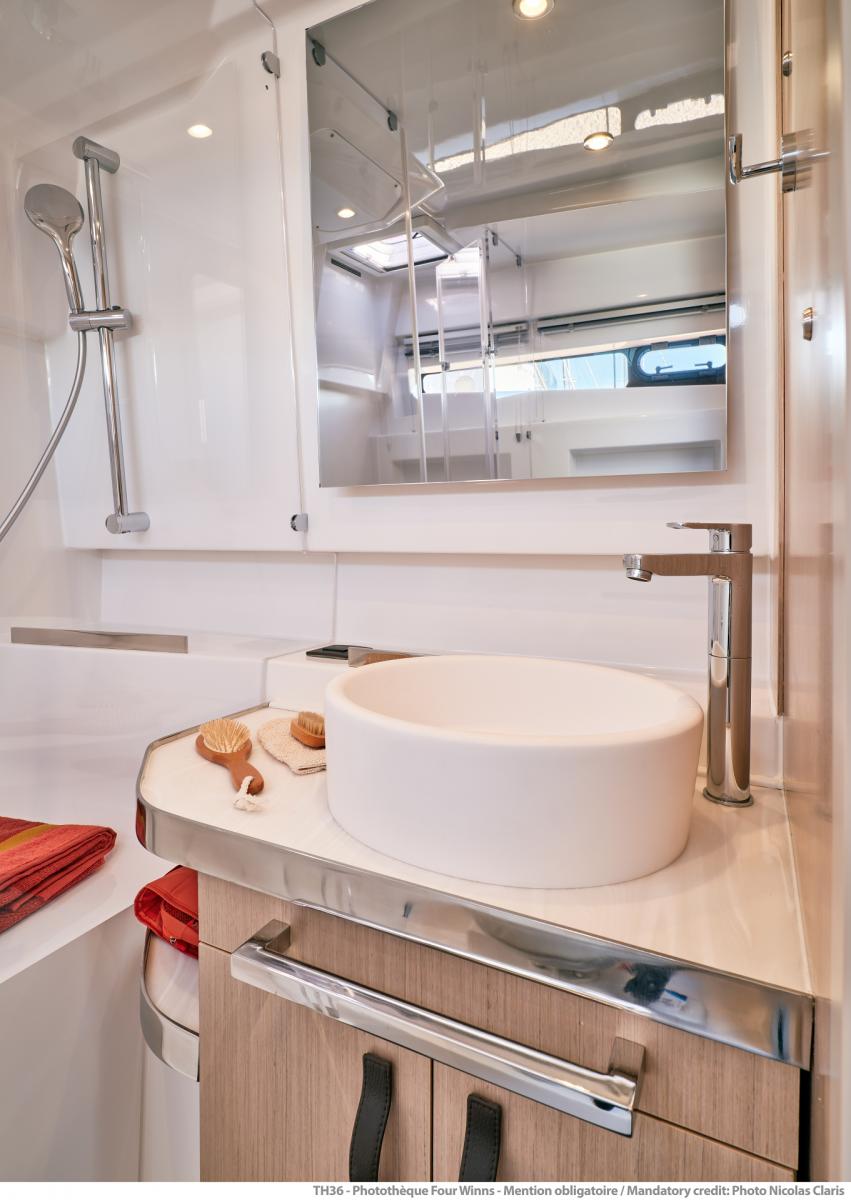 Binnenin maakt de TH38 gebruik van lichte eikenhouten afwerkingen, inbouwverlichting en hoogwaardige stoffen om de sfeer van een dagboot te verheffen tot die van een mini-jacht.