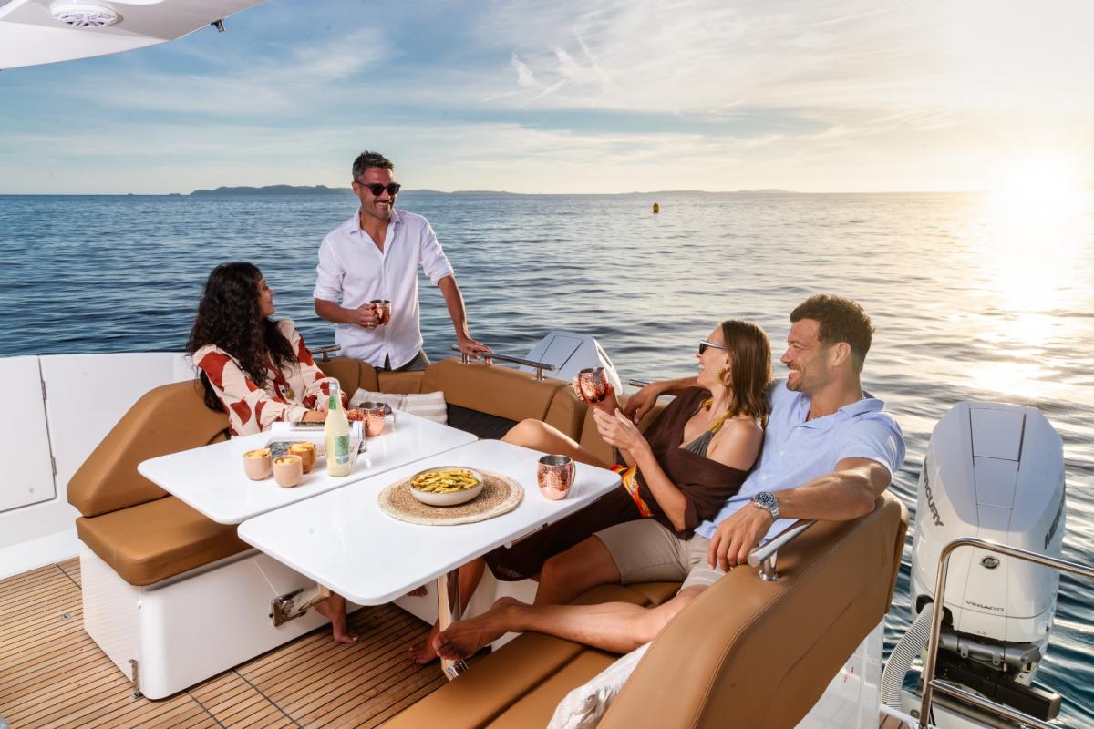 De Jeanneau Twin-Hull TH-38 is ontworpen om vrijheid en veiligheid te combineren en biedt betrouwbaar varen onder alle omstandigheden. Er zijn twee soorten windschermen beschikbaar: een versie over de volledige hoogte, die bescherming en comfort garandeert in alle weersomstandigheden, en een lagere, gestroomlijnde optie, die de luchtcirculatie en directe verbinding met de buitenelementen bevordert. De TH-38 past zich aan alle voorkeuren aan, in alle seizoenen.