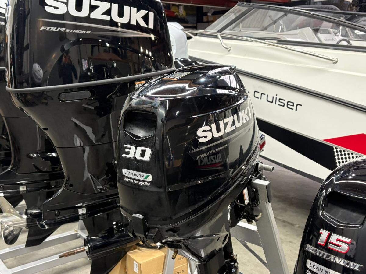 Hierbij een Suzuki 30pk 4takt EFI buitenboordmotor langstaart met afstandsbediening.